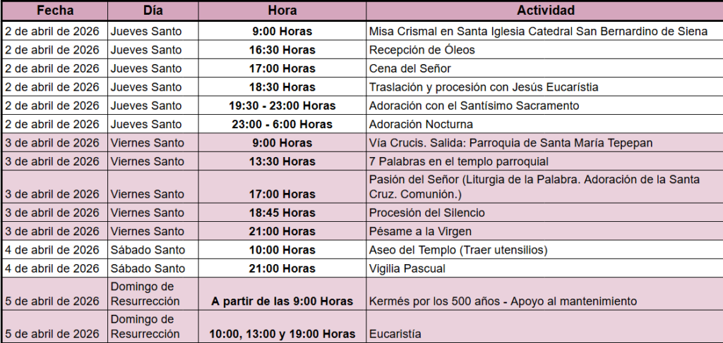 Actividades y Celebraciones de la Semana Santa abril 2, 2026abril 2, 2026| adminadmin| 0 comentarios| 6:38 am Categorías: Blog Deja una respuesta Cancelar la respuestaTu dirección de correo electrónico no será publicada. Los campos obligatorios están marcados con *Comentario * Nombre * Correo electrónico * Web Guarda mi nombre, correo electrónico y web en este navegador para la próxima vez que comente. Navegación de entradas PREVIOUS Entrada anterior: Miércoles 1° de abril 2026 Oh, Divina Providencia, 30 de Abril Día del Niño 202530 de Abril Día del Niño 2025 abril 30, 2025abril 30, 2025| adminadmin| 0 comentarios| 9:53 am Recuerda que debes dejar salir a tu niño/ niña interior y te conceda siempre alegría y sorpresas!Felicidades!! Leer másLeer más Lunes 5 de Junio de 2023. Santo Jubileo parroquial. Santo Jubileo parroquial.Lunes 5 de Junio de 2023. Santo Jubileo parroquial. Santo Jubileo parroquial. junio 5, 2023junio 5, 2023| adminadmin| 0 comentarios| 10:36 pm ‘En aquel tiempo, Jesús dijo a la multitud: «Yo soy el pan de la vida. El que viene a mí no tendrá hambre, y el que cree en mí nunca Leer másLeer más Jueves 1° de agosto de 2024. «Oh, Divina Providencia!Jueves 1° de agosto de 2024. «Oh, Divina Providencia! agosto 1, 2024agosto 1, 2024| adminadmin| 0 comentarios| 10:13 pm Jueves 1° de agosto de 2024.«Oh, Divina Providencia!Concédeme tu Clemencia y tú infinita bondad!… Tú Divina Providencia, se extienda a cada momento, para que nunca nos falte casa, vestido y Leer másLeer más